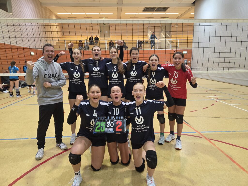 Das Spiel verlief dann aber sogar noch besser als erhofft: im ersten Satz ließen sie Mädels dem Gegner wenig Chancen und gewannen stark mit 25:11. Im zweiten Satz gab es zwei unglaubliche Aufschlagserien von Kapitänin Ronja und von Lene, die den Tabellenführer aus Graben-Neudorf zur Verzweiflung brachten. Und wenn diese mal einen Ball zurück gespielt bekamen konnte das Team direkt Gegenhalten, so dass dieser Satz mit einem fast schon legendären 25:2 mit nur zwei Rotationen endete. Im dritten Satz spüren sich unsere Mädels auch einen sehr hohen Vorsprung heraus, den sie dann aber durch viele Nachlässigkeiten verloren – dennoch deutlich mit 25:18 gewannen.