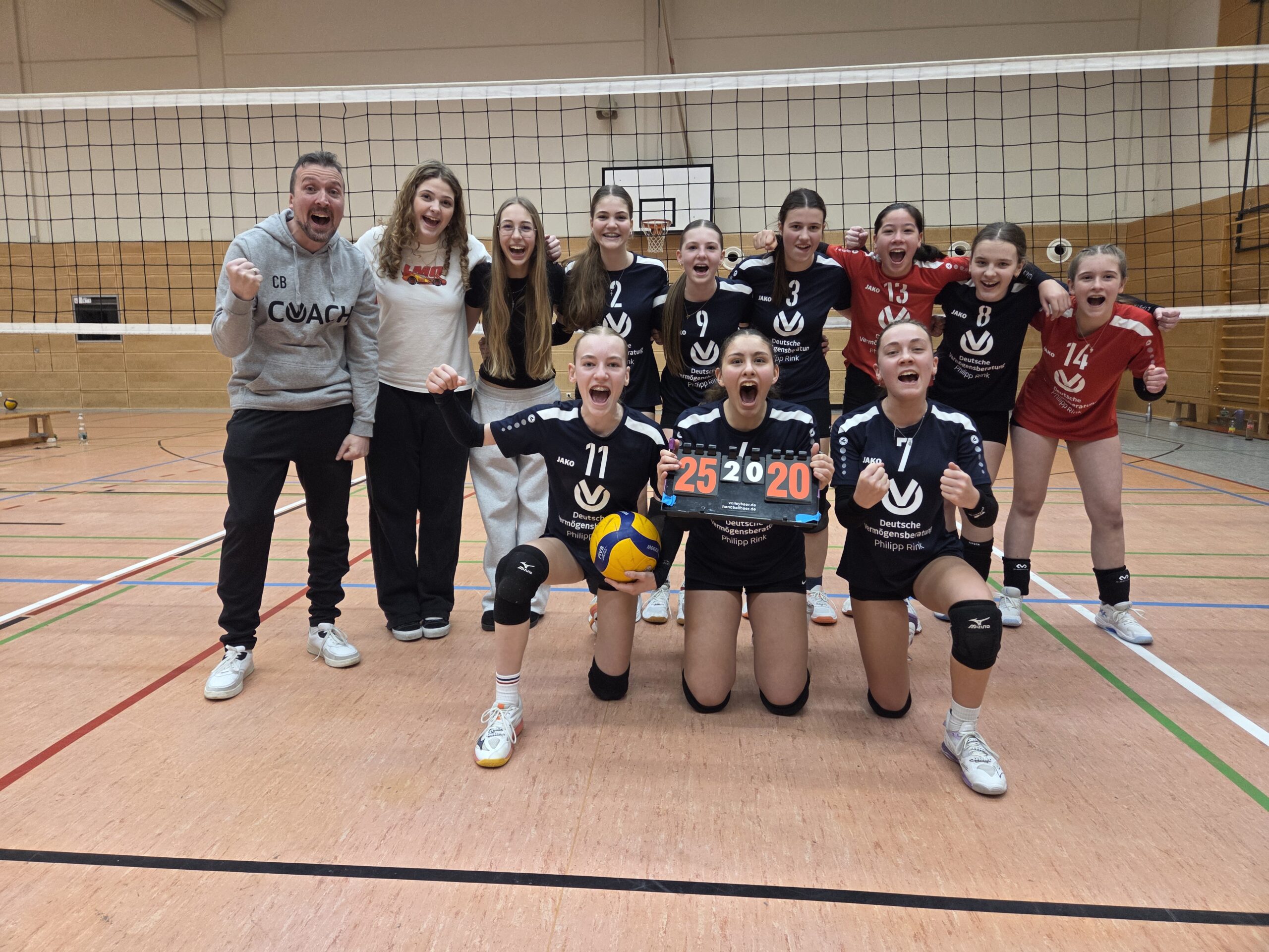 Das erste Spiel dieses Verbandsliga-Jugendspieltags gewannen wir souverän mit 2:0 gegen die Mittelbaden Volleys. Besonders erfreulich war dabei, dass alle zehn Spielerinnen Einsatzzeit erhielten und ihre Leistungen zeigen konnten. Im zweiten Spiel gegen Bretten wurden die Sätze deutlich umkämpfter, dennoch gelang es uns, beide für uns zu entscheiden. Vor allem die starken Aufschläge der Auswahlspielerinnen aus Bretten stellten unsere Annahme vor große Herausforderungen.