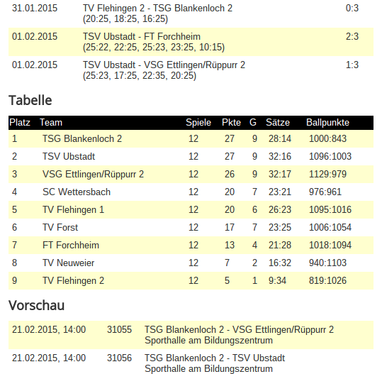 Der bisherige Tabellenführer TSV Ubstadt hat am Sonntag überraschend alle beide Spiele verloren (an dieser Stelle herzlichen Dank an Forchheim und Ettlingen/Rüppurr für den freundlichen Gefallen) und uns somit den Vortritt überlassen. Mit zwei Siegen beim nächsten Heimspieltag am 21.02. – übrigens der absolute Spitzenspieltag mit den drei bestplatzierten Mannschaften – könnten wir somit aus eigener Kraft endgültig die Weichen Richtung Aufstieg stellen. Über lautstarke Unterstützung auf der Tribüne würden wir uns natürlich sehr freuen!